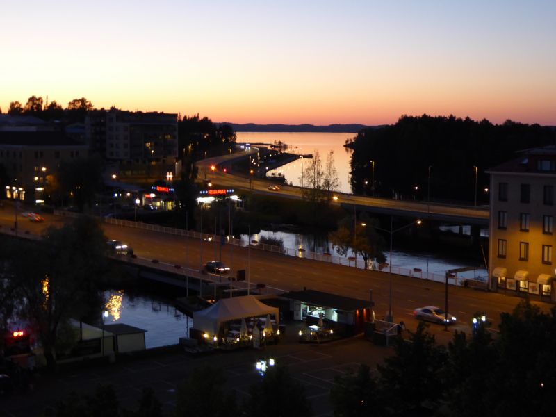 Den heutigen Tag nutzten wir für die Besichtigung von Savonlinna. Wir trafen uns um viertel vor neun zum Frühstück, das in unserem Zimmerpreis inbegriffen war und das im benachbarten Restaurant serviert wurde. Mit dem Frühstück waren wir erstmal gar nicht so zufrieden. Es gab keinen Kaffee und die Auswahl erschien uns auch ansonsten spärlich, gab es doch weder Joghurt noch Cerealien oder sonst etwas außer Brot, einer kleinen Auswahl Aufschnitt und Käse. Nachdem wir uns bereits über den fehlenden Kaffee beschwert hatten, entdeckten wir dann jedoch, dass das Buffet im hinteren Teil des Restaurants noch weiter ging. Hier gab es sowohl weitere Kaffeebehälter als auch Tee, Obst, süßes Gebäck, Joghurt, Müsli und verschiedene Säfte. Wir waren einfach zu dumm zum frühstücken!